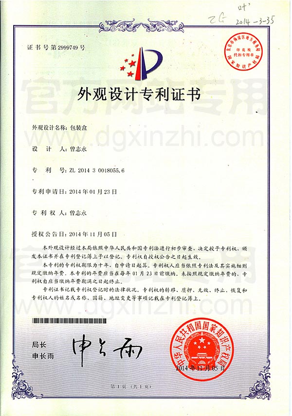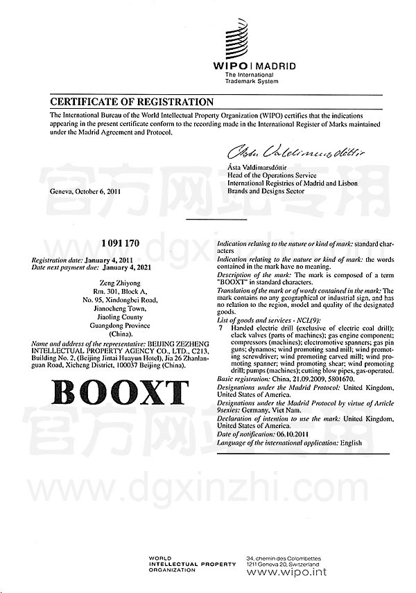 • 國際知識(shí)產(chǎn)權(quán)組織(WIPO)認(rèn)證證書