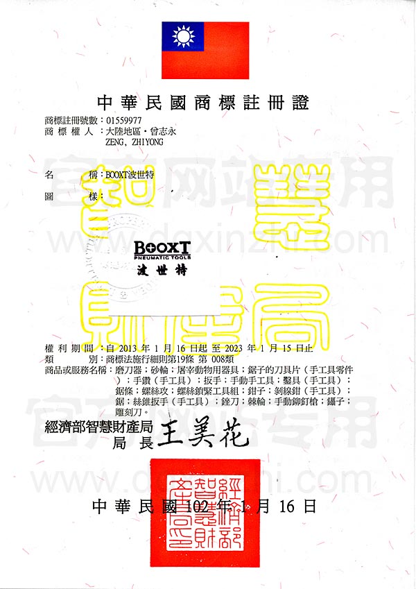 • BOOXT臺(tái)灣注冊(cè)證第8類