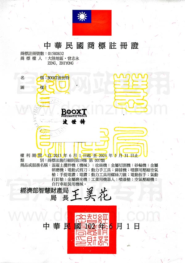 • BOOXT臺(tái)灣注冊(cè)證第7類