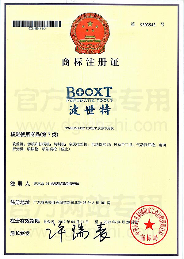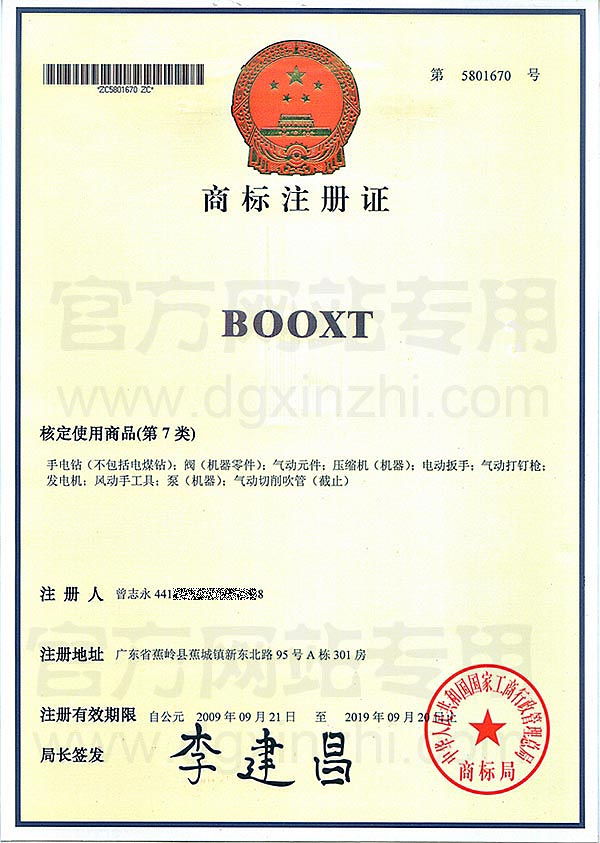 • BOOXT第7類商標(biāo)注冊(cè)證